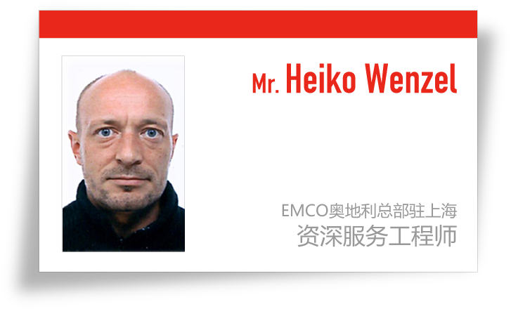富信国际贸易有限公司作为EMCO公司产品在中国的独家代理,专门在上海成立了其子公司:“富钏(上海)国际贸易有限公司”通过富钏公司可以让客户以人民币进行机床原装备件的购买和服务的购买。另外,设在国内的4个联络处,也均有售后服务人员配备。目前共有维修服务工程师和应用工程师总计8名。而且为了进一步加强EMCO在中国的售后服务,从2014年11月开始EMCO总部派遣了一名德籍资深服务工程师,Mr. Heiko Wenzel 先生常驻上海。 |